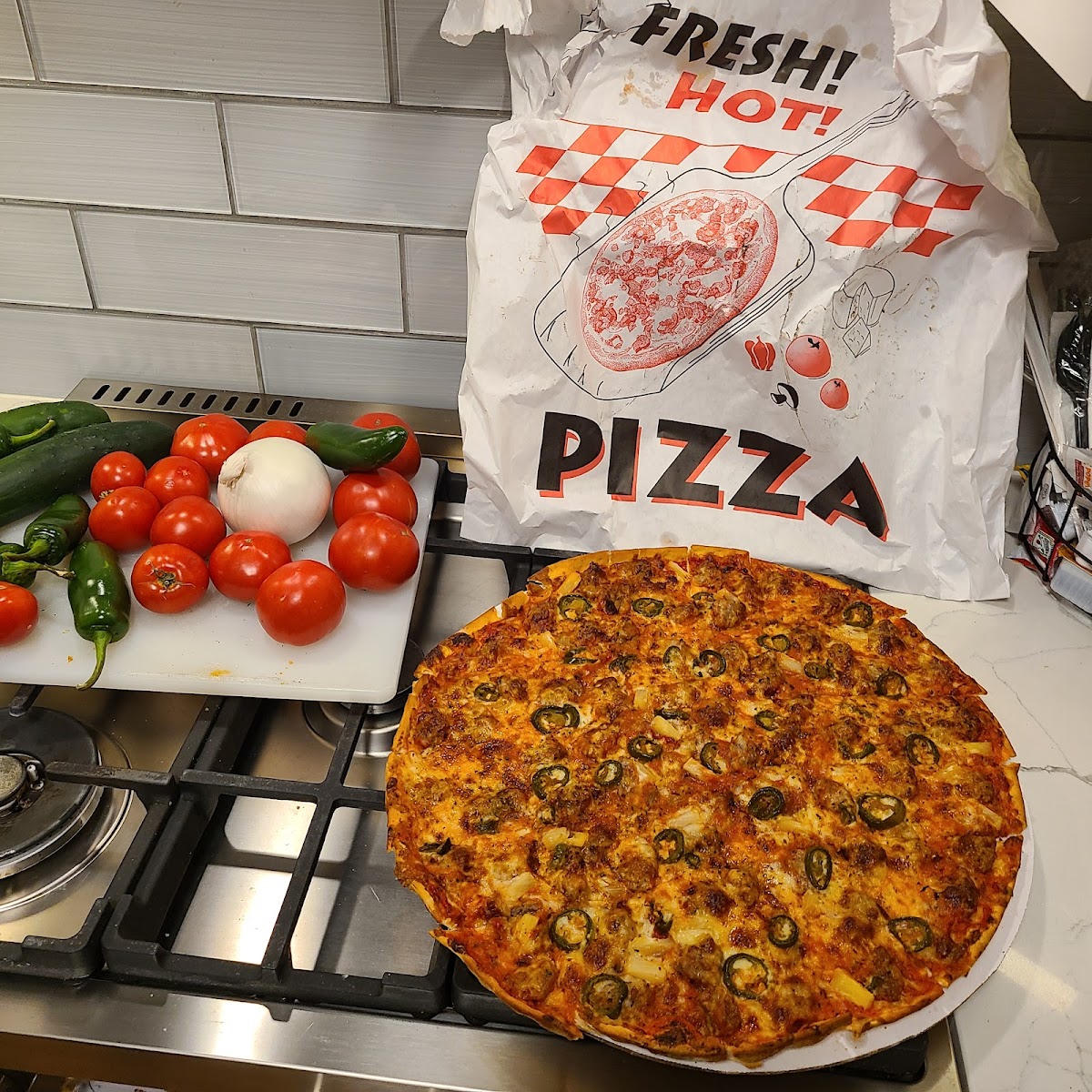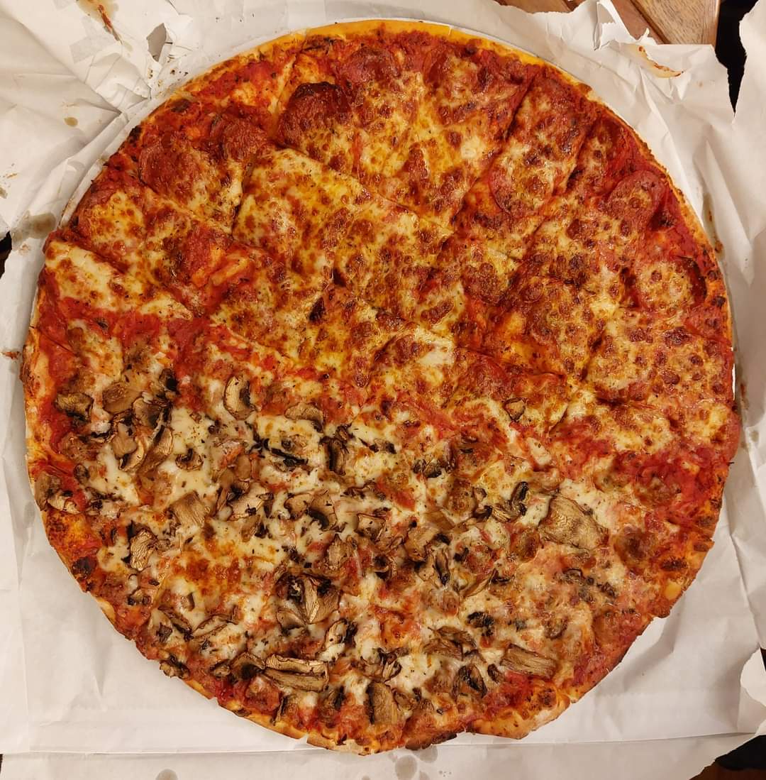 I’ve seen a lot of good reviews about this spot and they did not disappoint at all. Very good pizza, to be honest some of the best I’ve had in this area. Perfect crust with good texture and bite with an amazing crunch at the end. Fresh toppings and perfectly browned cheese. Got a large sausage and pepperoni with half green pepper and onion and they load it up. The sauce is more of a savory sauce which pairs perfectly with the saltiness of the proteins and sweetness of the veggies. Will absolutely be back for more. 10/10 for me !!!!!