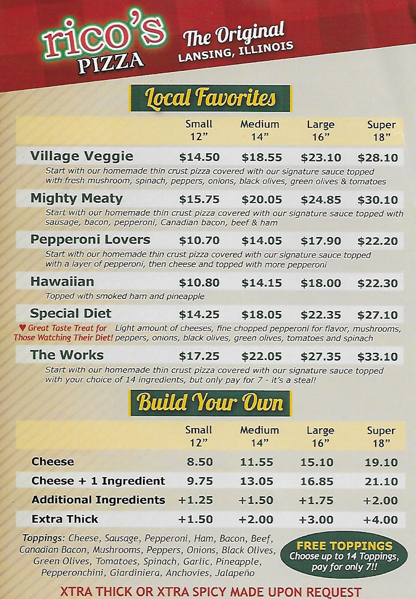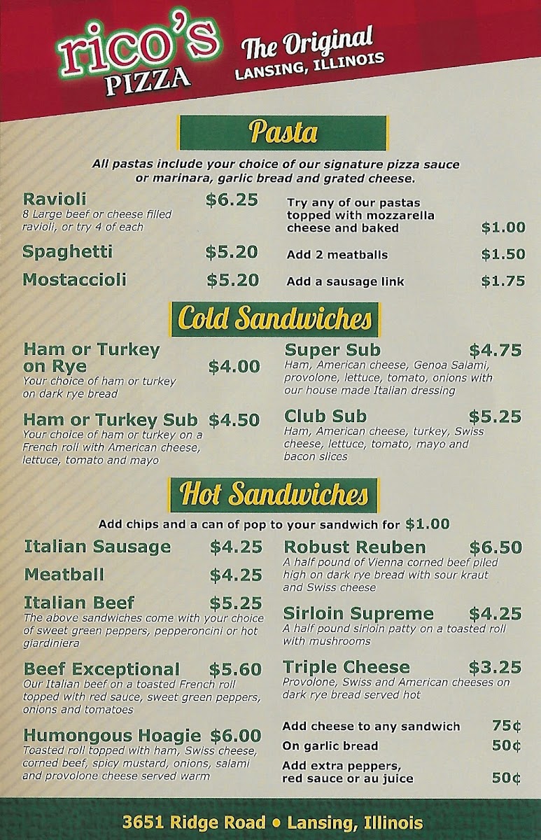 Overall, the menu at Rico’s invites you to enjoy honest, unfussy meals that are familiar and filling. Whether you’re ordering in for a cozy night or stopping in for a friendly meal, you’ll find a menu that’s approachable and easy to enjoy.